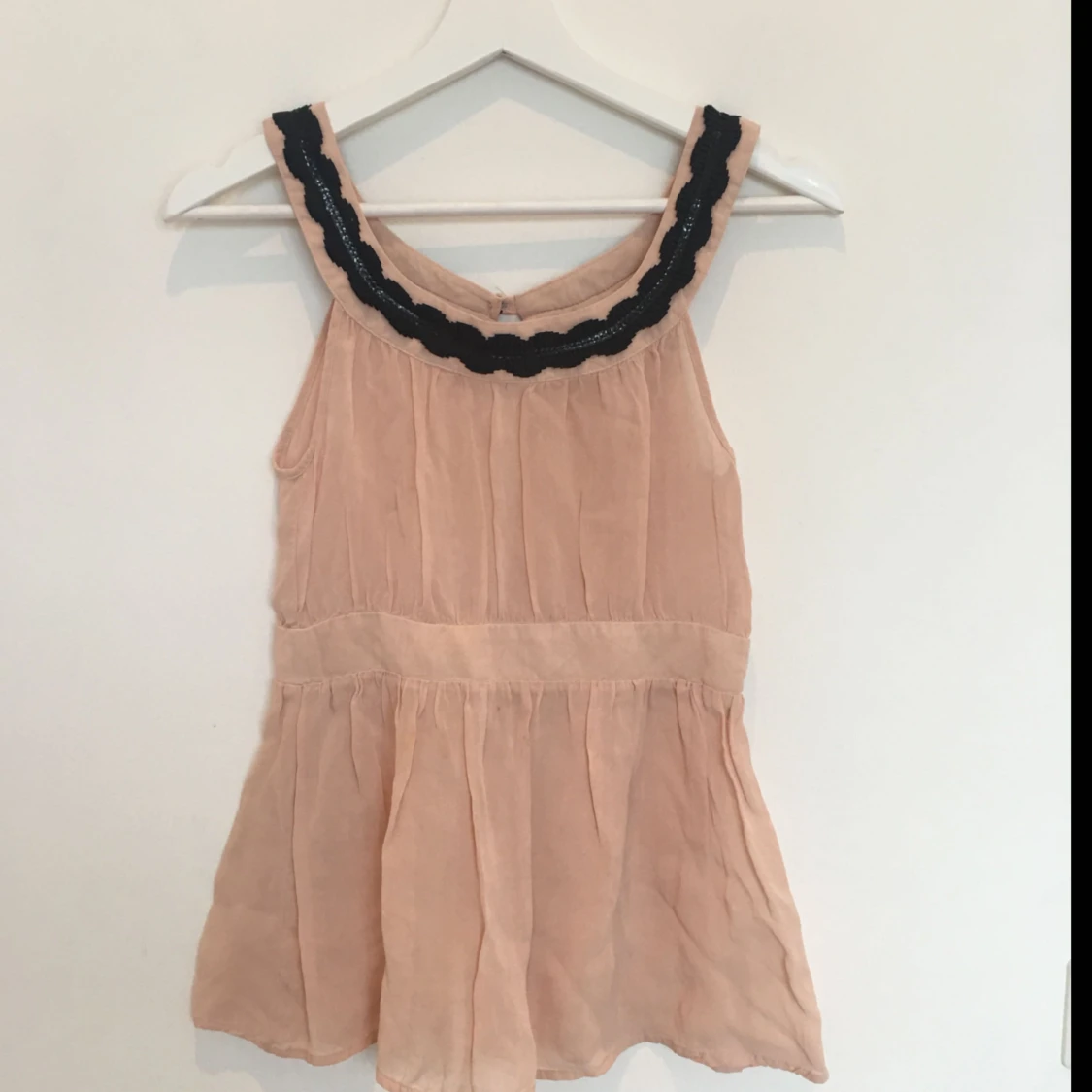Tunn, transparant blus i rosa med svarta detaljer. Fint skick! Kan mötas i Stockholm eller skickas mot fraktkostnad. Hör av dig om du vill ha fler bilder! Glöm inte att trycka på gilla-knappen (hjärtat) om du gillar mina kläder! :)