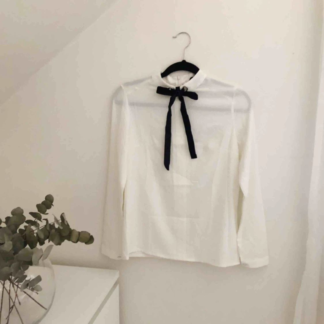 Vit knytblus med svart sammet snöring från Topshop! Använd 1 gång
