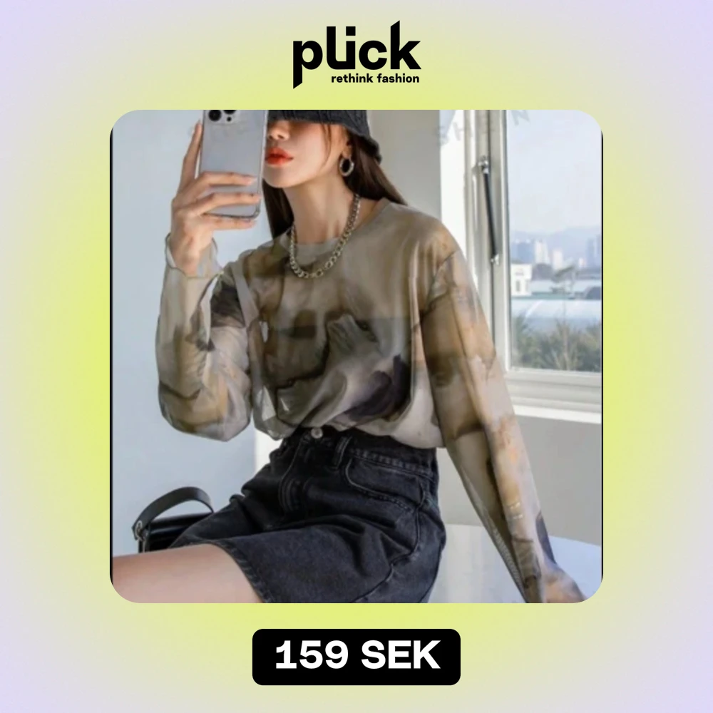 Säljer en supercool transparent tröja med ett abstrakt mönster i jordnära toner. Den har långa ärmar och en loose passform, perfekt för lager-på-lager-stil. Materialet är lätt och luftigt, vilket gör den idealisk för både vår och sommar. Passar perfekt till en svart kjol eller jeans för en avslappnad look.