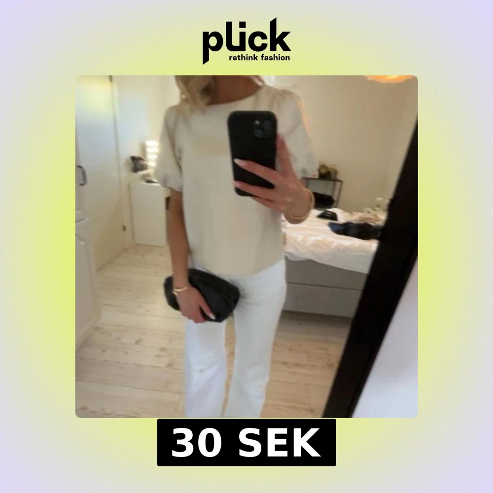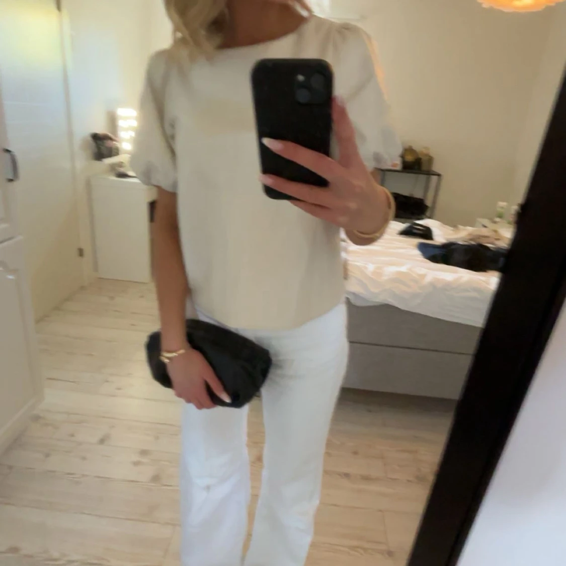 Superfin blus med trekvartsärmar och puffarmar! Beige skinnimitation!💃