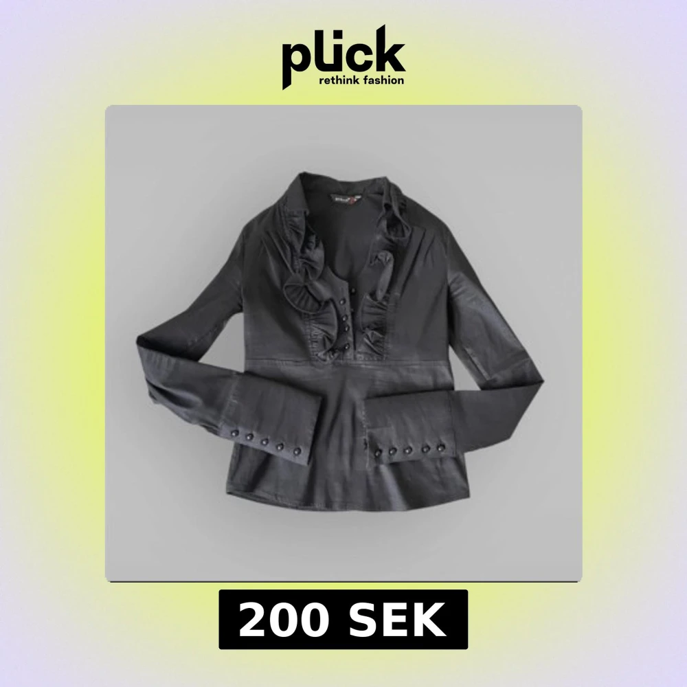 Elegant svart blus från kiwi med volangdetaljer längs kragen och knappar framtill. Långärmad design med knappar vid ärmsluten för en stilren look. Perfekt för en chic och sofistikerad stil.