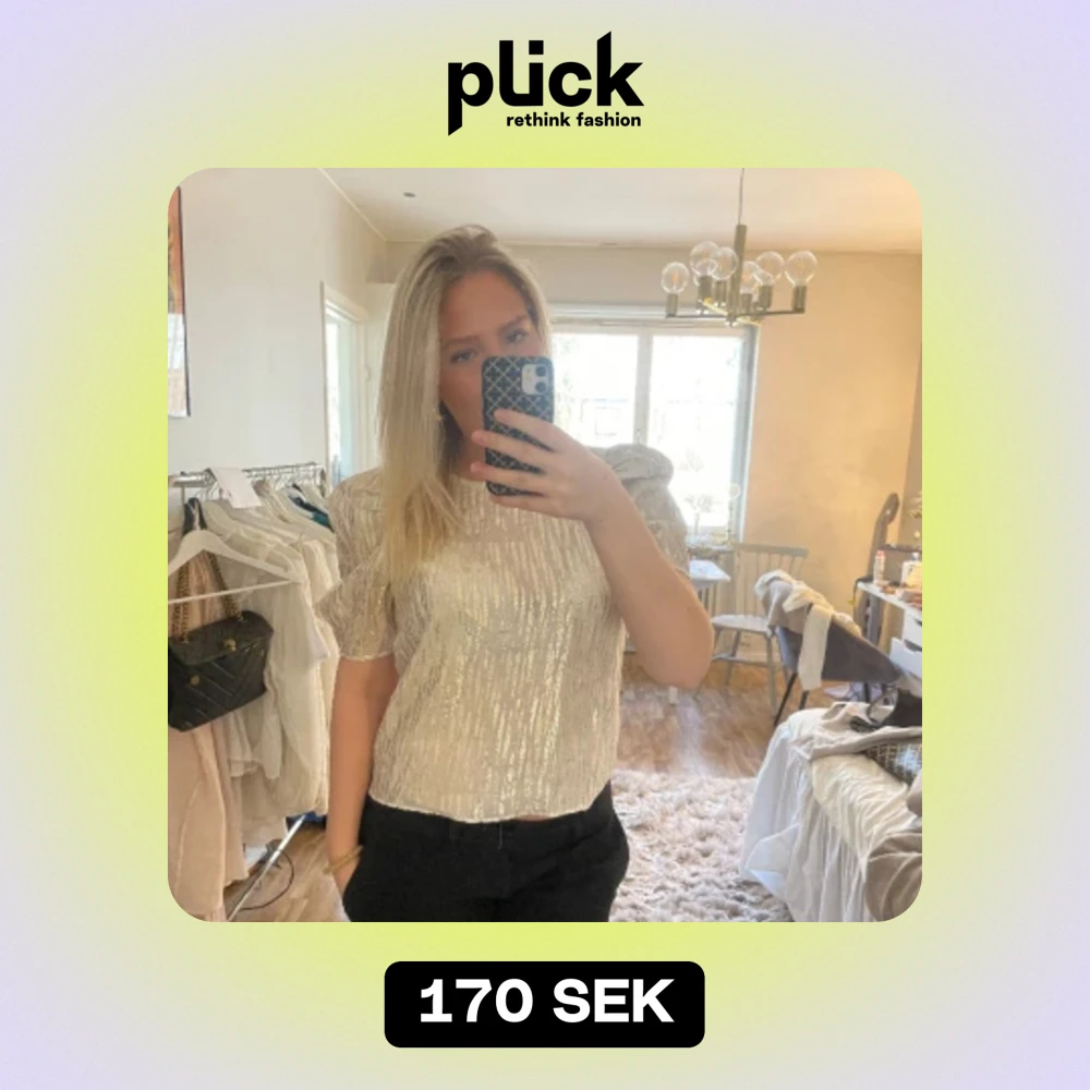 En asfin guldig topp/blus med axelpuffar från Lindex i storlek S💛💛