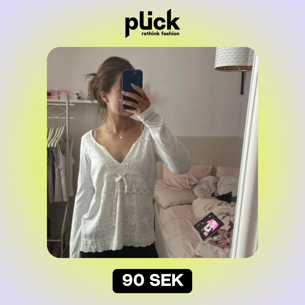 En söt vit tröja som jag köpt på sellpy men är originellt ifrån odd Molly, jättesöt och jätteskön men använder aldrig❤️