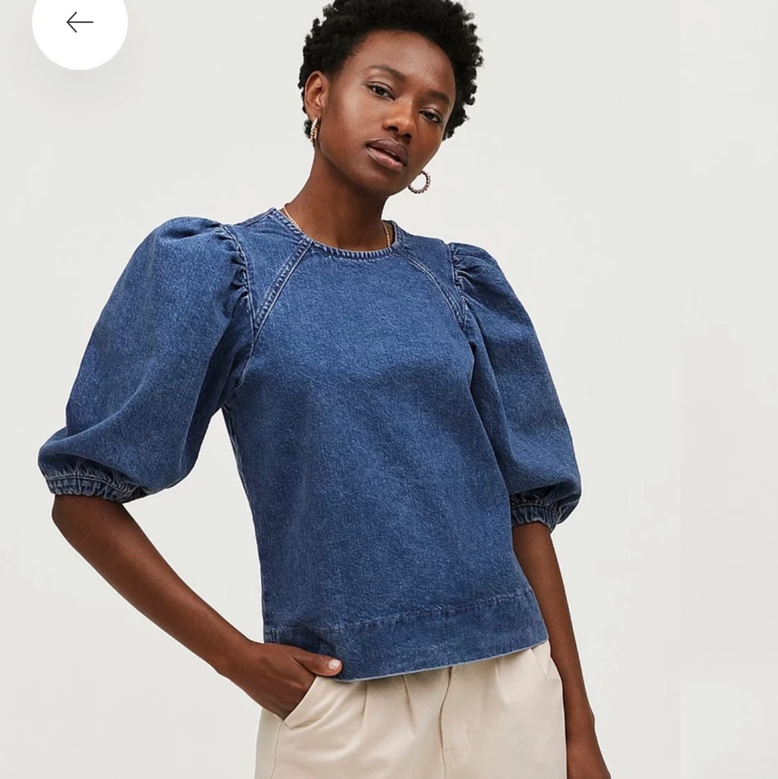 Säljer jättetrendig tröja med puffärmar från ellos🥰 ⚠️nypris: 800 kr⚠️ mitt pris: 450 kr⚠️ Gjord av ett jeansmaterial och aldrig använd💕