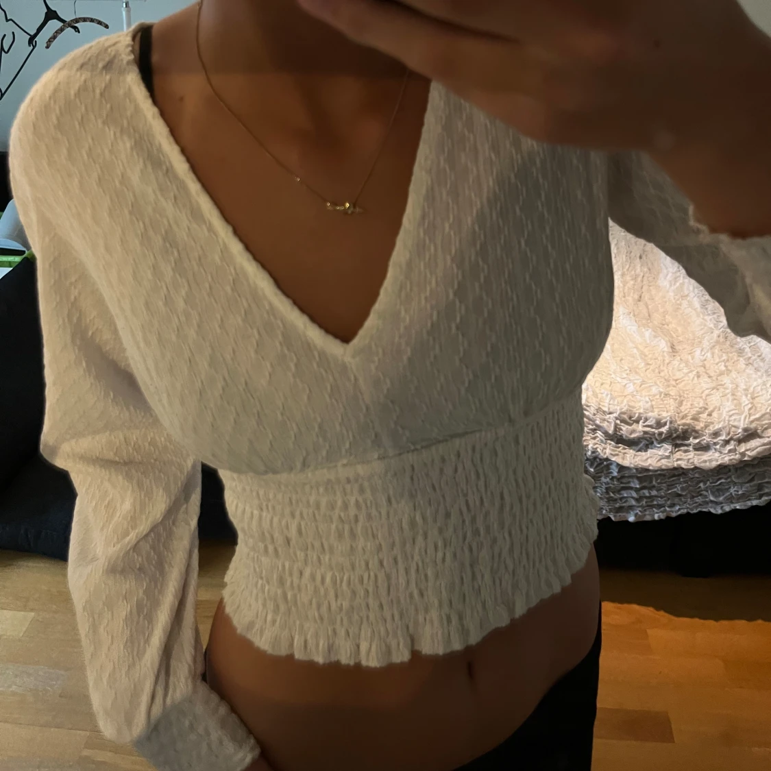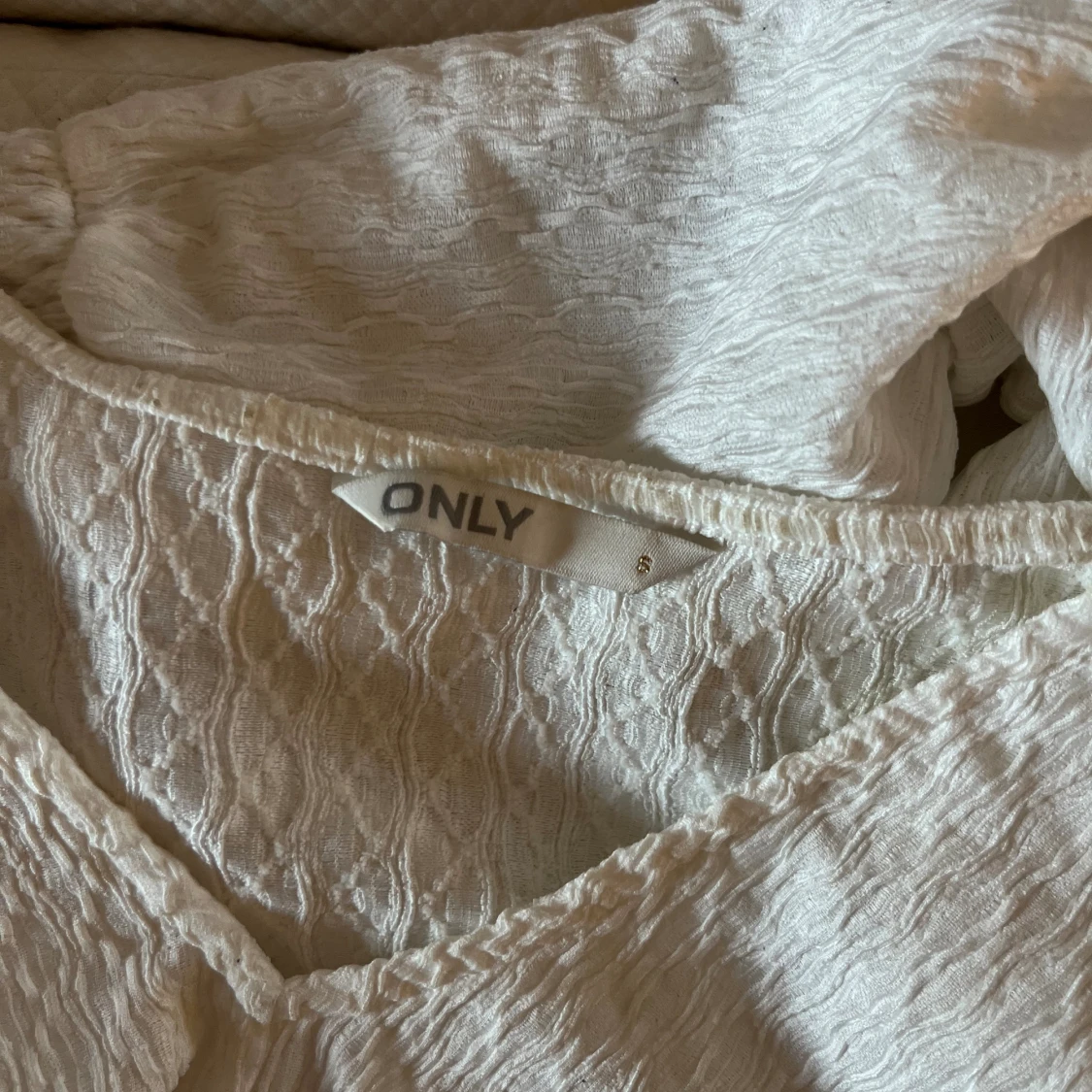 Vit blus/tröja från Only 🤩 Storlek S Använd 2-3 gånger. Säljs inte längre. Skriv vid intresse eller fler frågor🥰