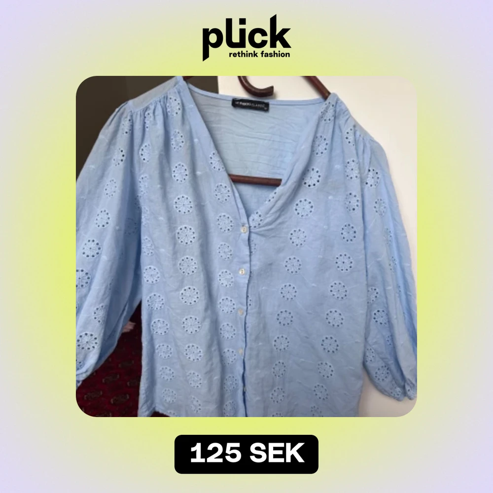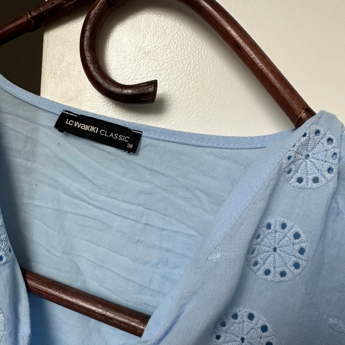 Tröja, med fina detaljer lite ballong armar som är kortare. Skulle säga att det är en super fin blå färg. Den är köpt i Turkiet förra året och säljer pågrund av att den inte används, skriv gärna för fler bilder. 🤍🤍
