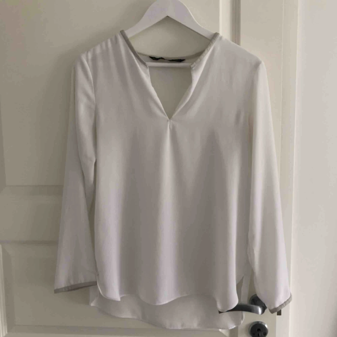 Fin vit blus med läderdetaljer från Zara. I fint skick :) Köparen står för frakten.