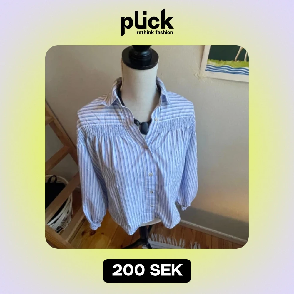 Randig blus/skjorta med fina detaljer, Armar med resår gör ärmarna lite puffiga och fina!