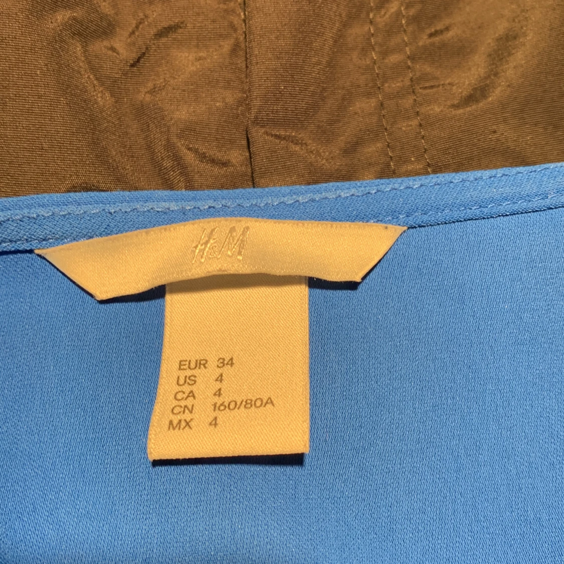 Kornblå blus i polyester från HM i stl 34. Trumpetärm. Bra skick.