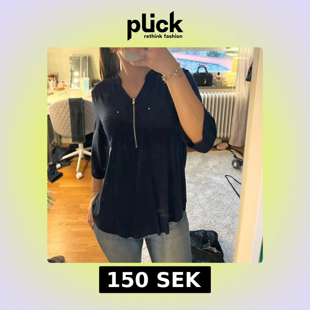Supersöt mörkblå blus som inte kommer till användning💞 Har supersöta detaljer framtill och är trekvartsärm!!