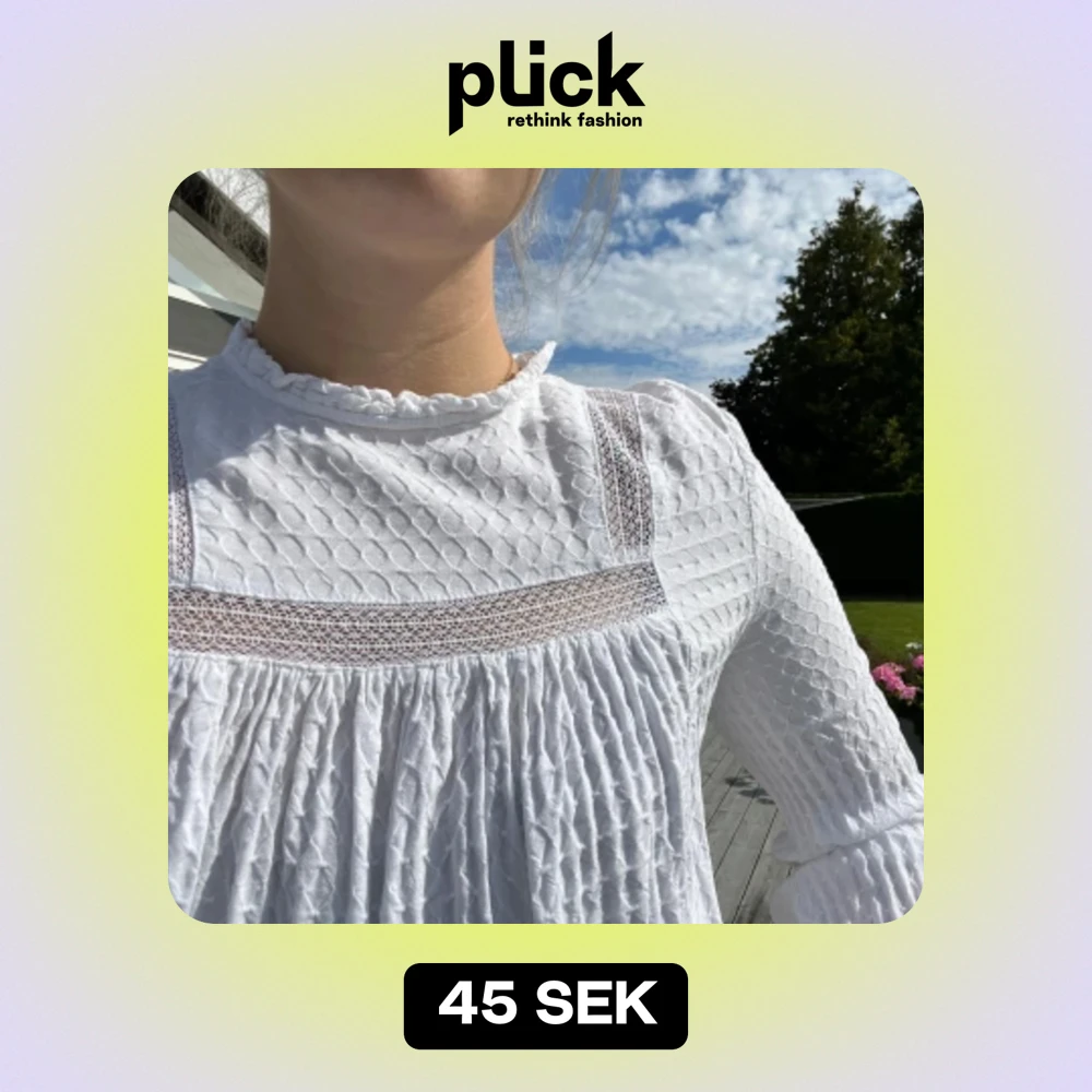Såååå himla fin men har tyvärr vuxit ut den 😢 Jättefin att ha en stickat väst över eller stickat tröja och kragen är ute. Spetsdetaljer och knäpper i nacken