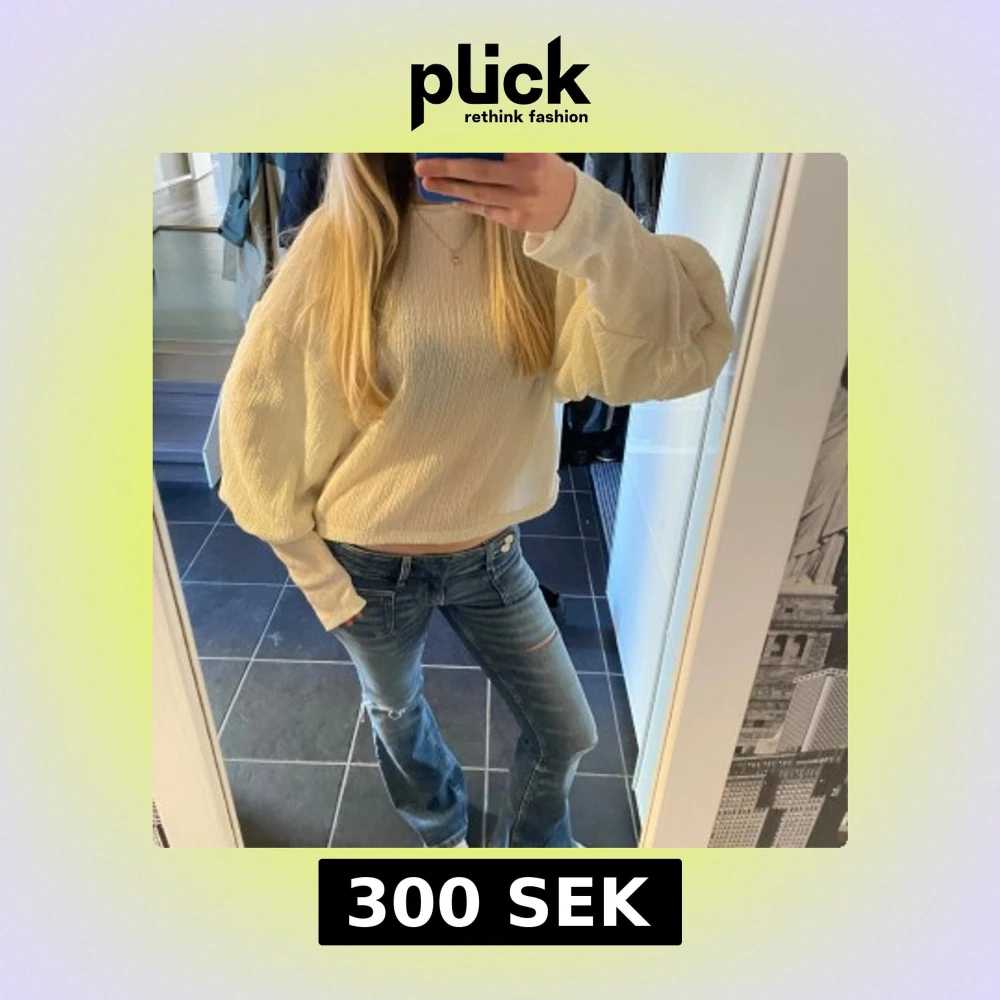 Säljer en stilren tröja med långa ärmar och en lös passform. Perfekt för en avslappnad look. Tröjan har en enkel design som gör den lätt att matcha med olika outfits. Skulle säga att den är lite krämvit/beige.
