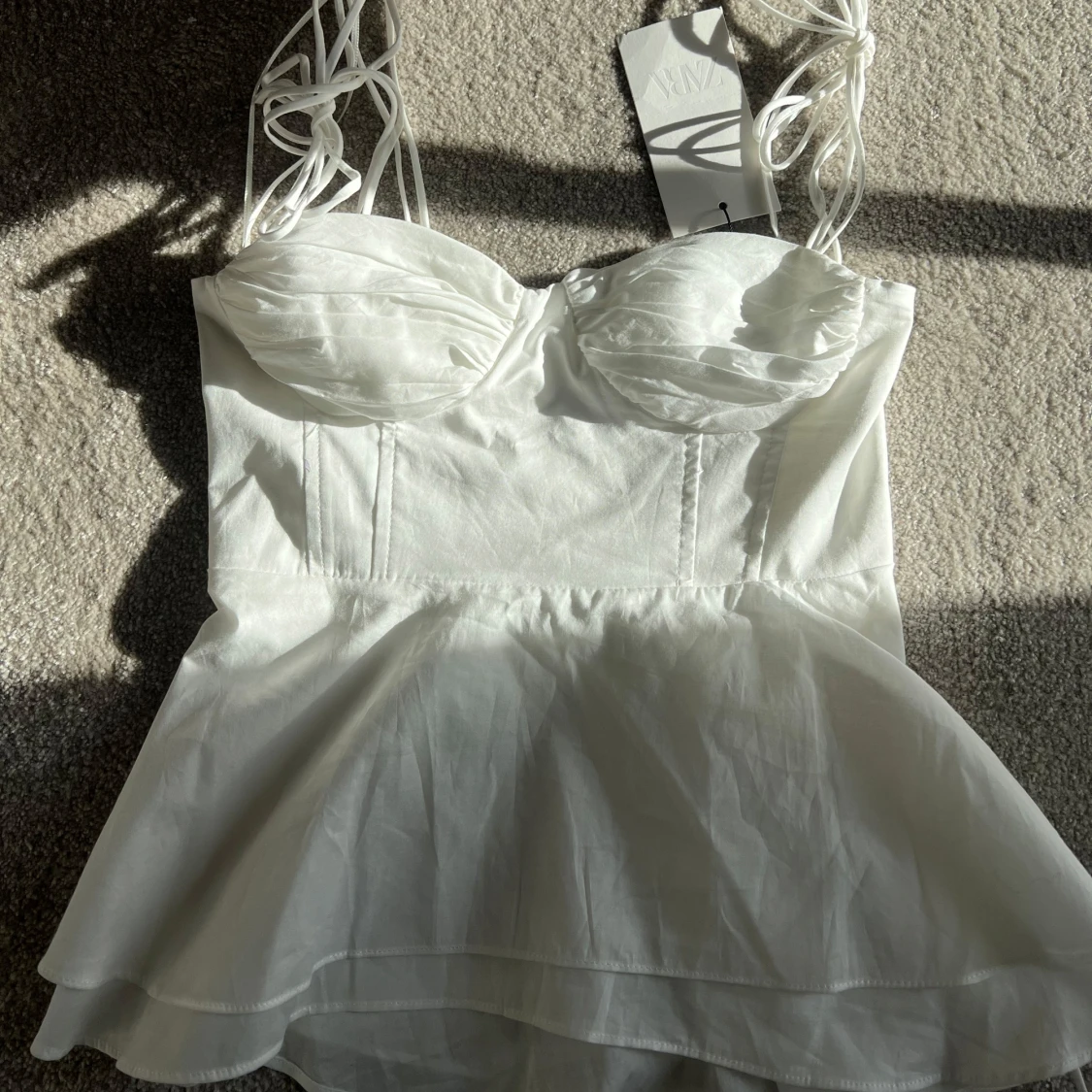 Säljer denna populära toppen från zara med prislappen kvar, har ett litet blått sträck (se bild 3) men ingenting som syns💓