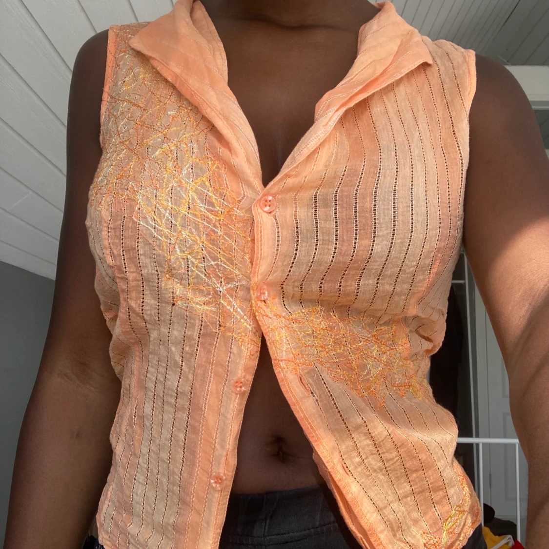 Så fin blus i orange med coola detaljer | Fint skick | Säljer då jag tyvärr inte använder tillräckligt | Köpare står för frakt ❣️