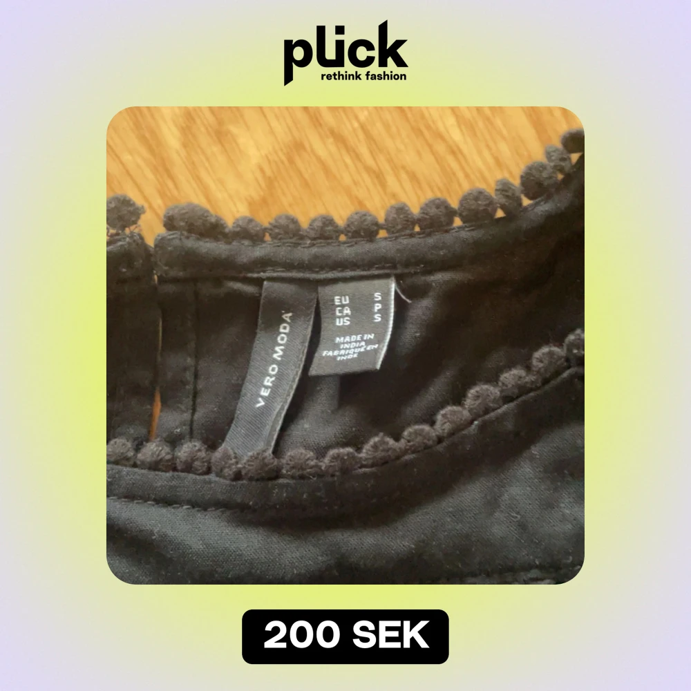 Säljer en svart blus från Vero Moda i storlek S. Blusen har fina spetsdetaljer och korta ärmar. Perfekt för både vardag och festliga tillfällen. Den är i bra skick!