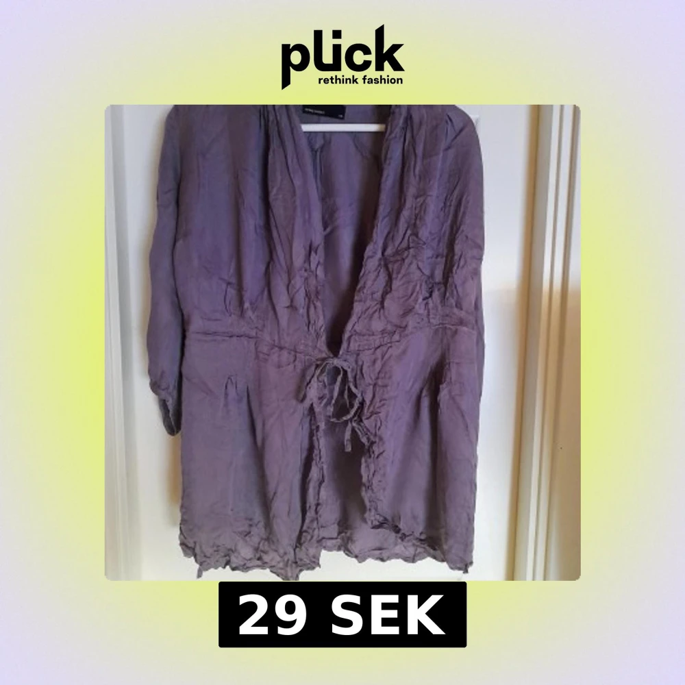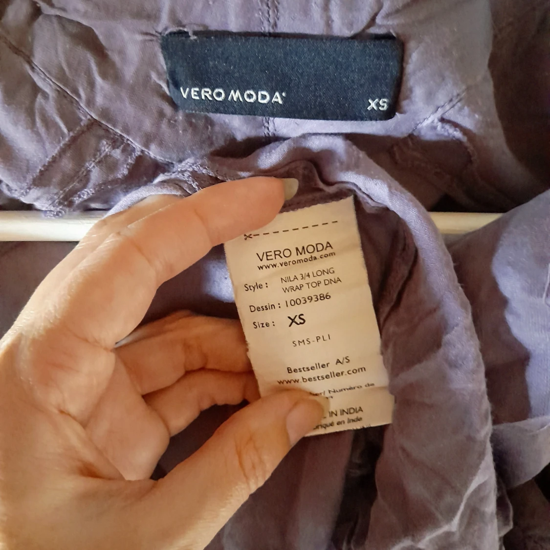 Säljer en lila omlott blus från Vero Moda i storlek XS. Jackan har knytning i midjan och långa ärmar. Materialet är en blandning av bomull och viskos vilket gör den mjuk och lätt. Tyvärr så har jag inte lyckats strula den något bra. Den blir lätt skrynklig