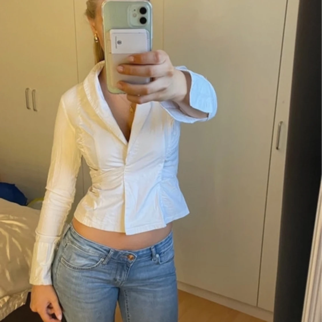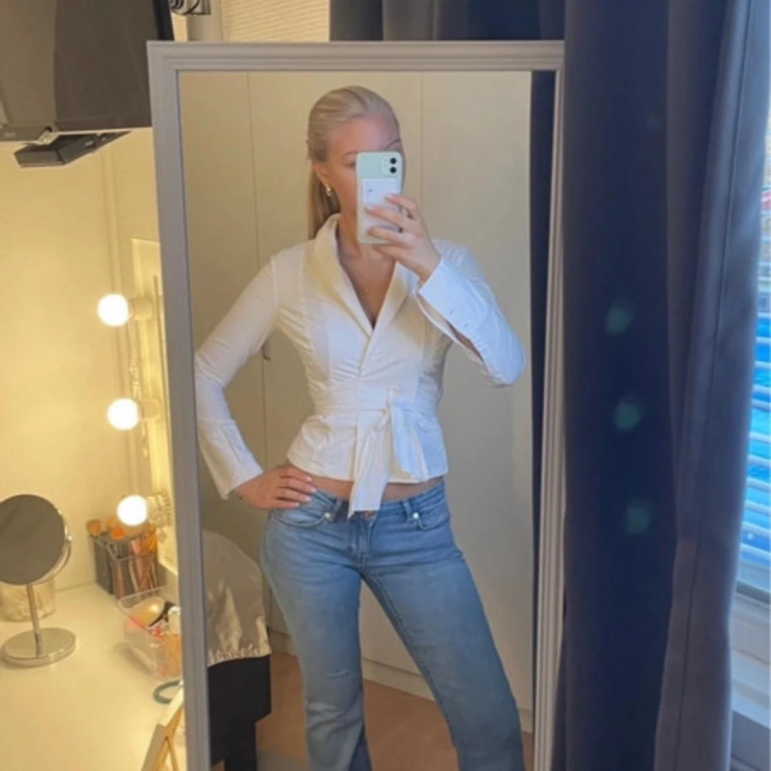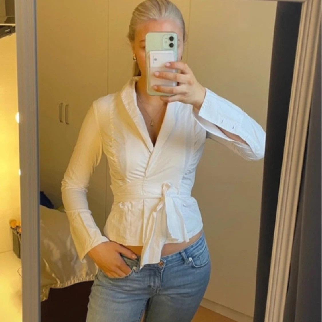 Vit skjorta med knytning som en jättefin detalj. Den är i storlek S, passar på mig som vanligtvis bär S och är 165 cm lång. Bra skick förutom en lite. gul fläck på ryggen som knappt syns (be om bilder). Kom privat vid intresse! 💗