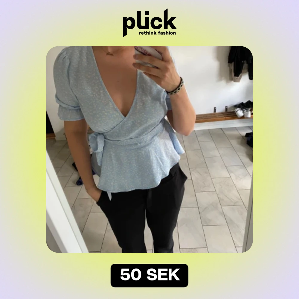 Gullig omlott-blus i ljusblĂ„ fĂ€rg frĂ„n Vero ModađŠ Sparsamt anvĂ€nd och i stl S!