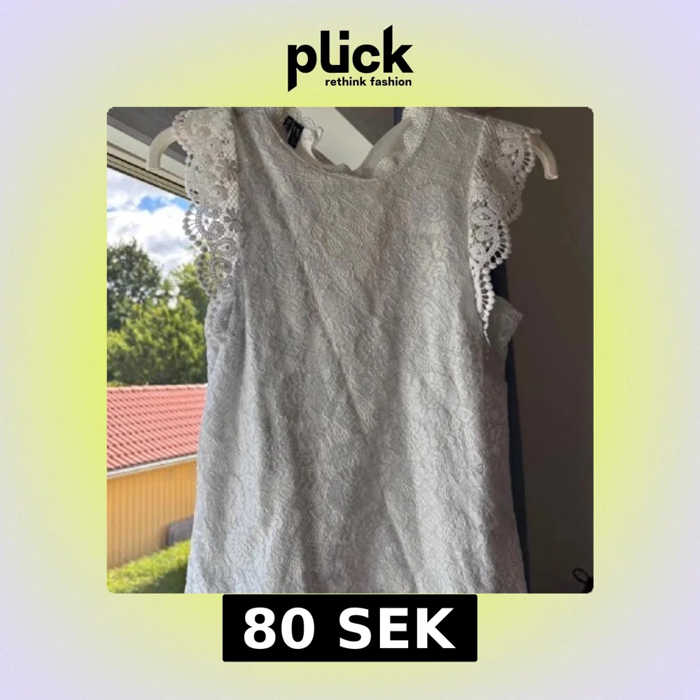 Superfin vit blus från Pieces (Veromoda) med spetsmönster och dekorativa volangärmar. Perfekt för sommarens alla tillfällen, med ett romantiskt och fräscht uttryck.