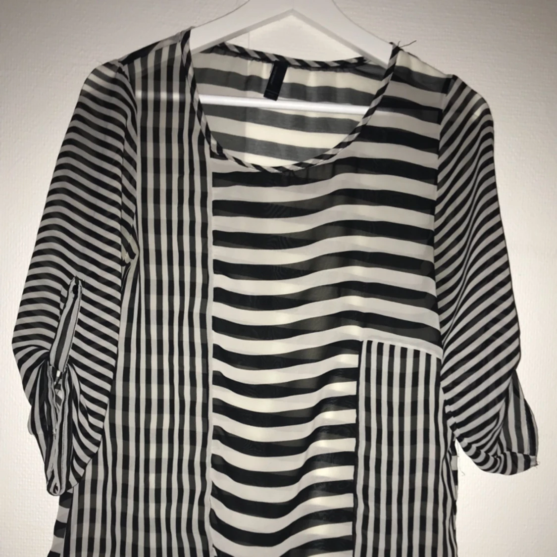 Fin randig blus i transparent (genomskinligt) material. Uppvikbara ärmar med knapp. Oanvänd😊