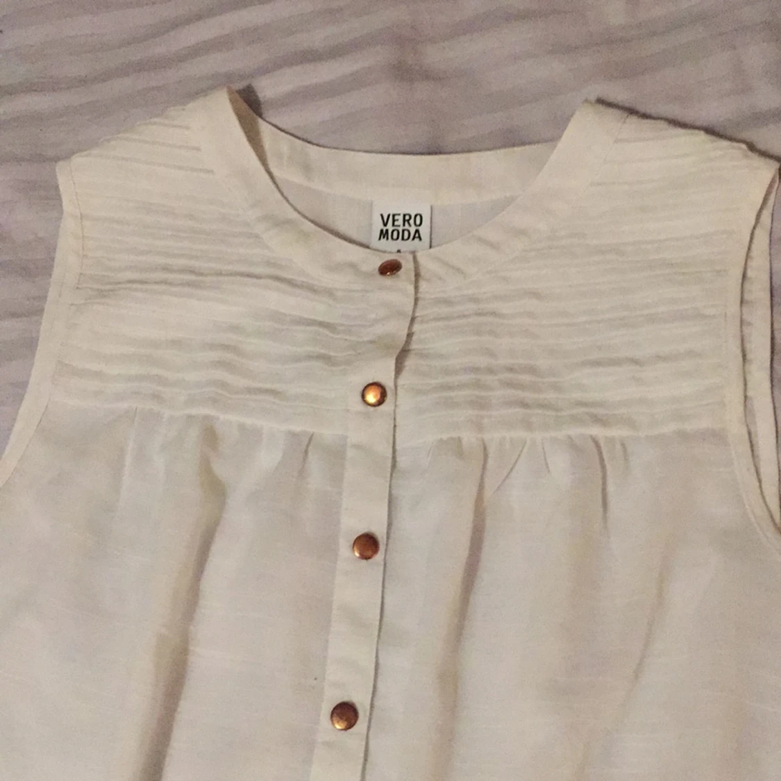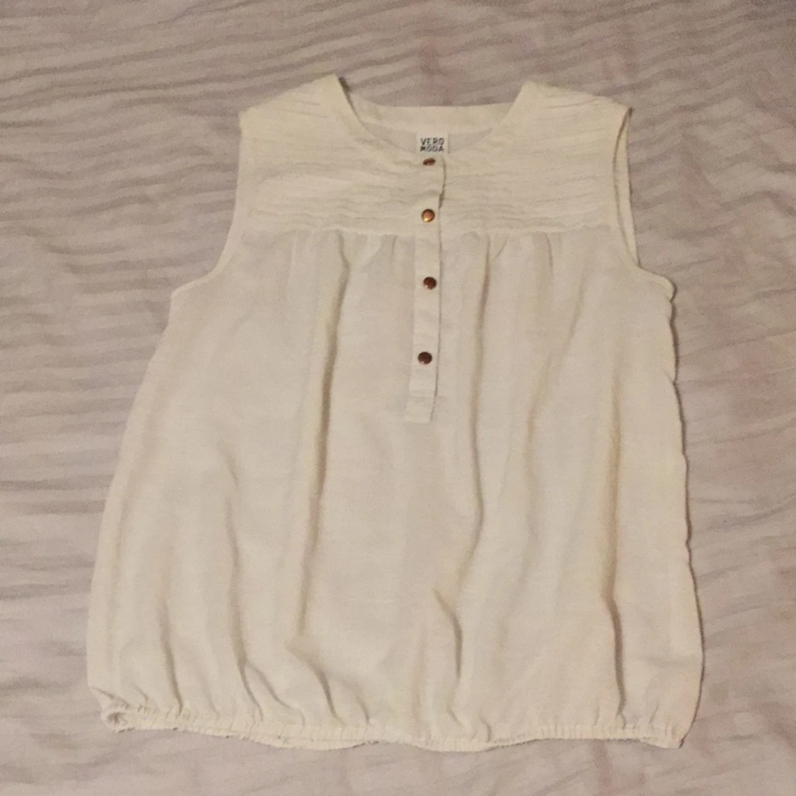 Jättesöt ärmlös topp från Vero Moda med "resår" sparsamt använd och i fint skick. Passar såväl S som M.