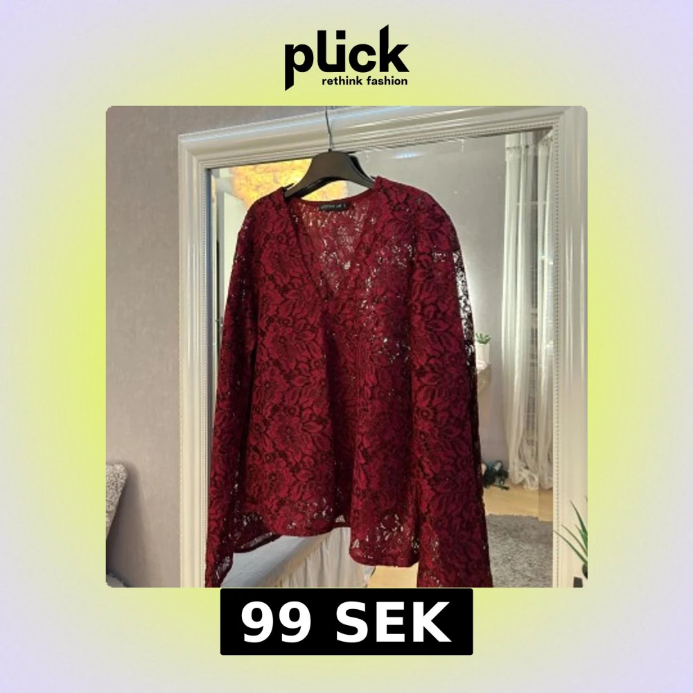 Snygg vinröd blus i spets från Stockh LM med v-ringning. Köpt från MQ. Aldrig använd så den är i nyskick