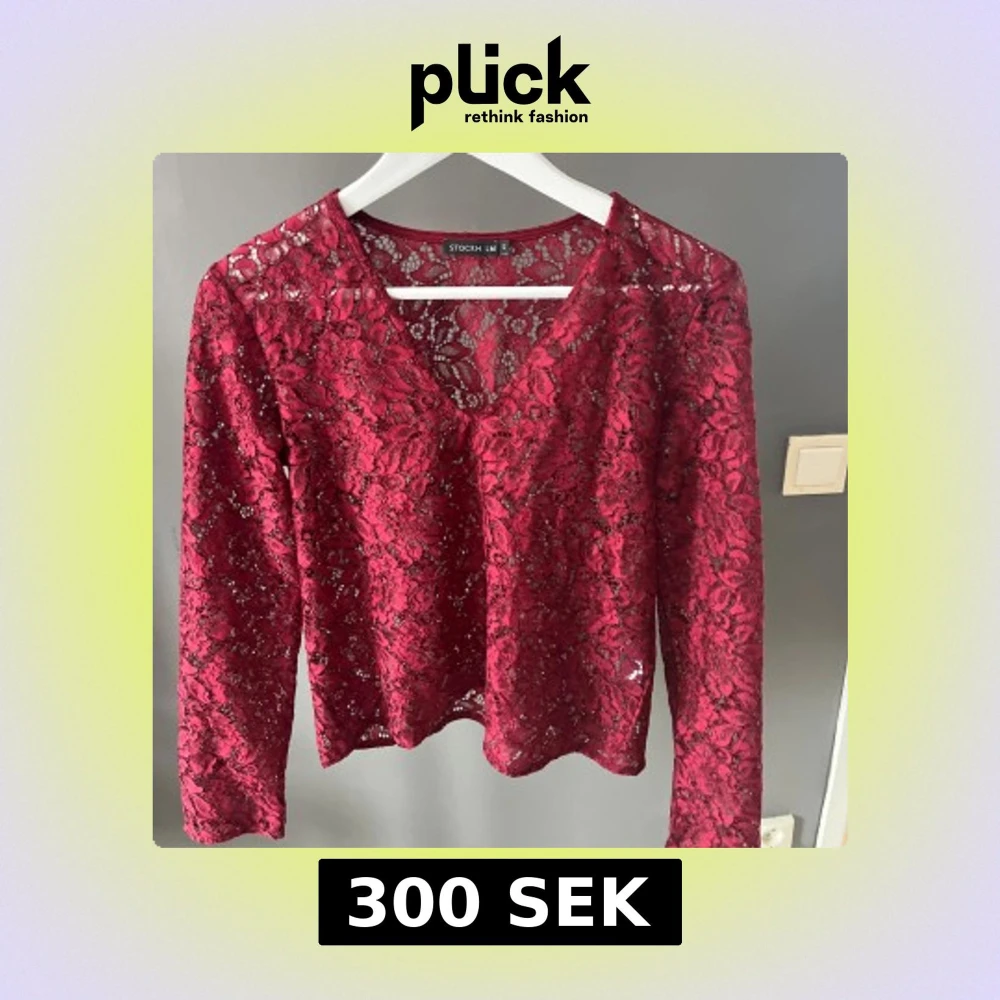 Snygg vinröd spetsblus från Stockh LM med v-ringning.