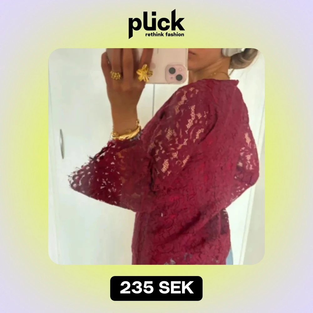 Så så fin långärmad topp med vida ärmar och spets. Storlek M men passar mig med storlek S perfekt. Lång passform med spets❤️
