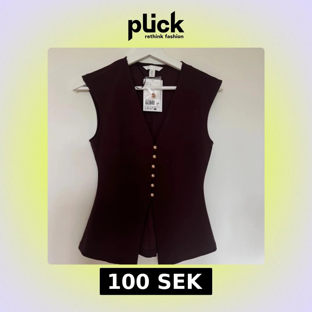 Snygg vinröd väst från H&M i figurnära modell med djup v-ringning och sex guldiga knappar framtill❤️🤗