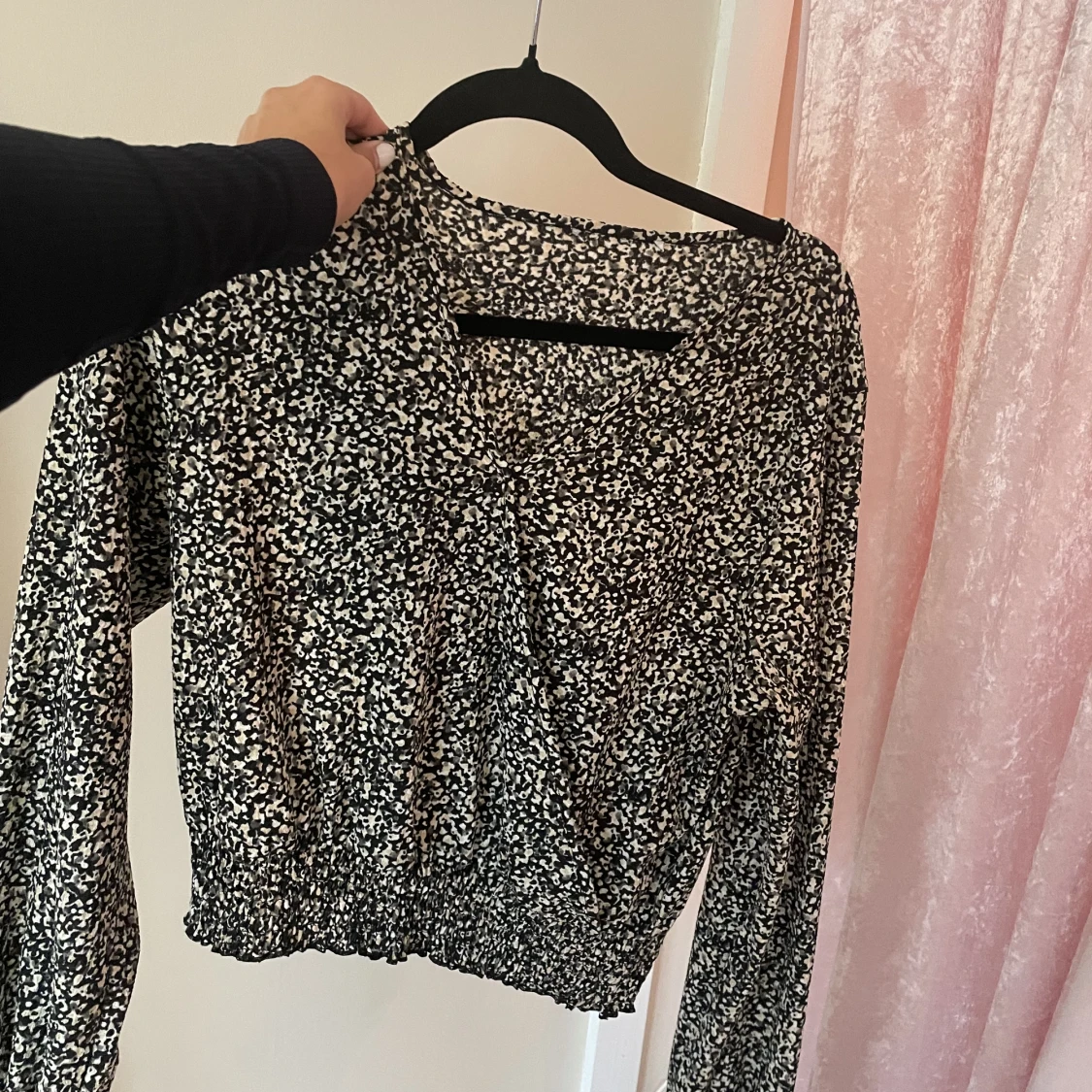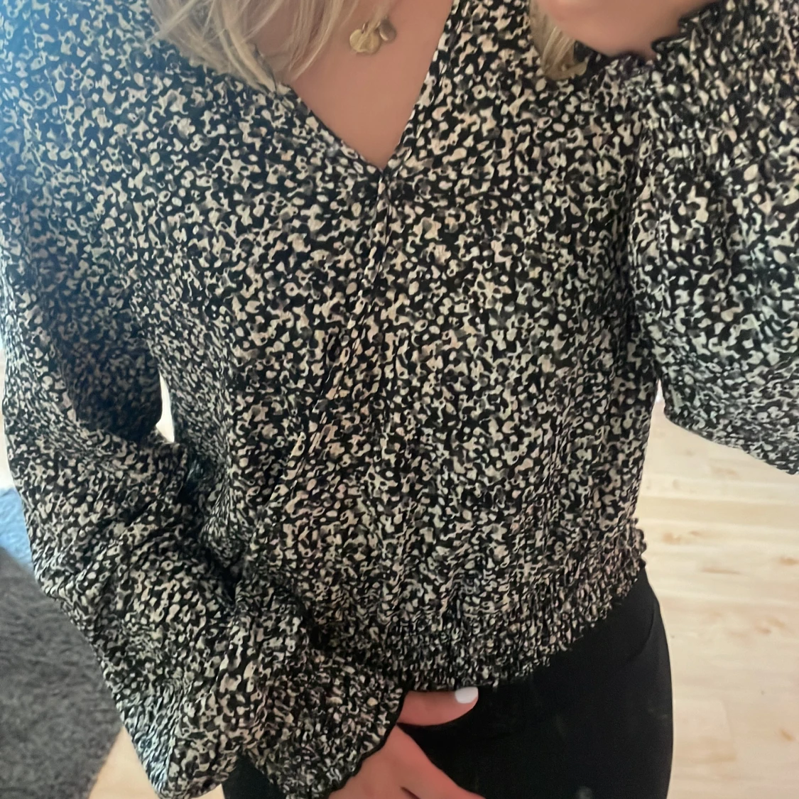 Söt blus i prickigt mönsterkorsad över bröst o mage, med sömmar vid armar och midja☺️