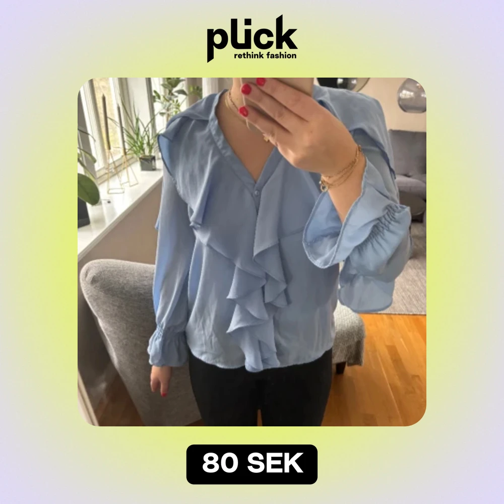 Blå blus från zara, har ett hål på armen men är lagat med en säkerhetsnål på insidan ( se bild 3)