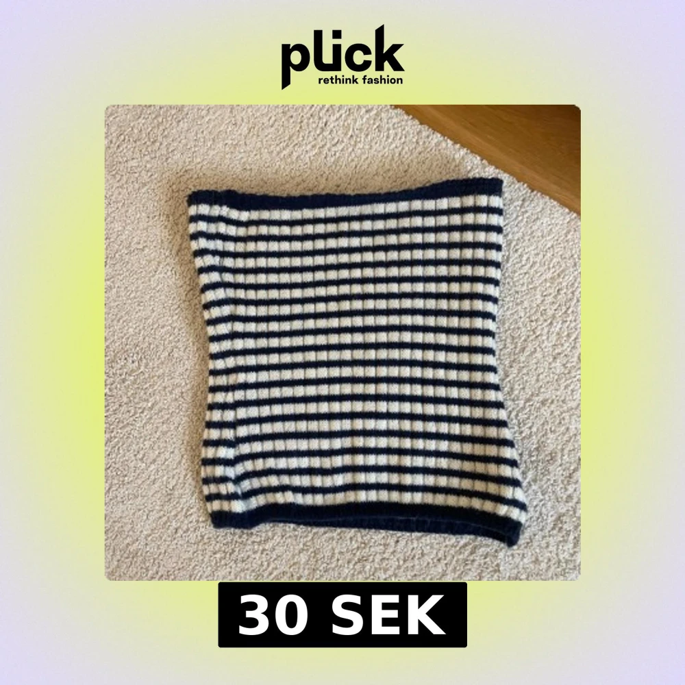 Snygg tubtopp med randigt mönster i marinblått och vitt. Stickad i mjukt material som håller dig varm under kyliga dagar. Perfekt att slänga på sig för en cool och avslappnad look.