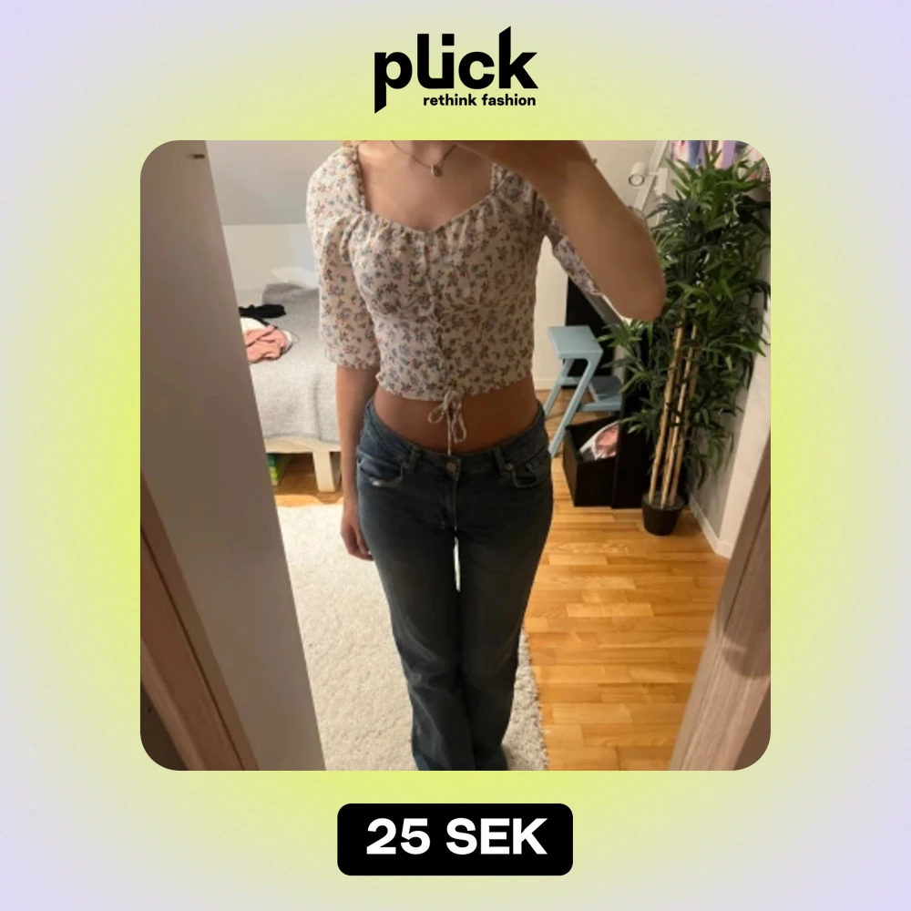 Super fin blommig vit topp med snöre på framsidan och en dragkedja på sidan. Toppen är lite croppad, passformen är väldigt bra. Mycket bra skick. Köpt på Primark i England.