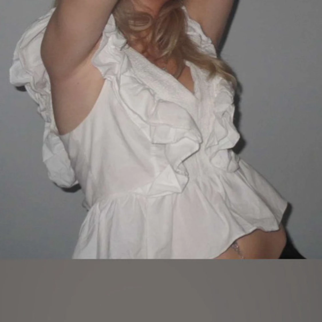 Säljer denna vita blusen ifrån H&M! OBS första bilden är lånad, andra bilden är min💞💞