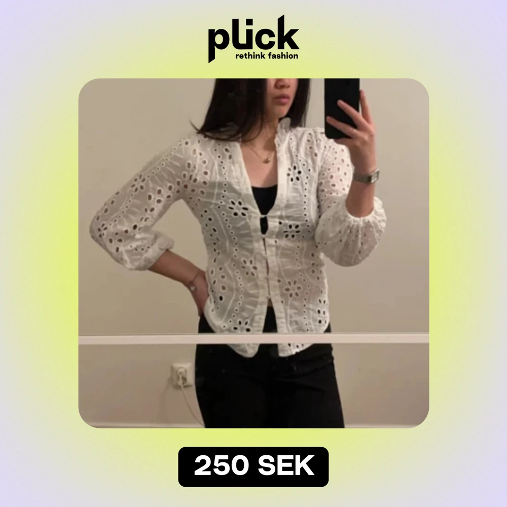 Jättefin blus med fina detaljer. Säljer då den tyvärr är lite för liten. Perfekt till studenten eller som sommarblus!🌟🌺
