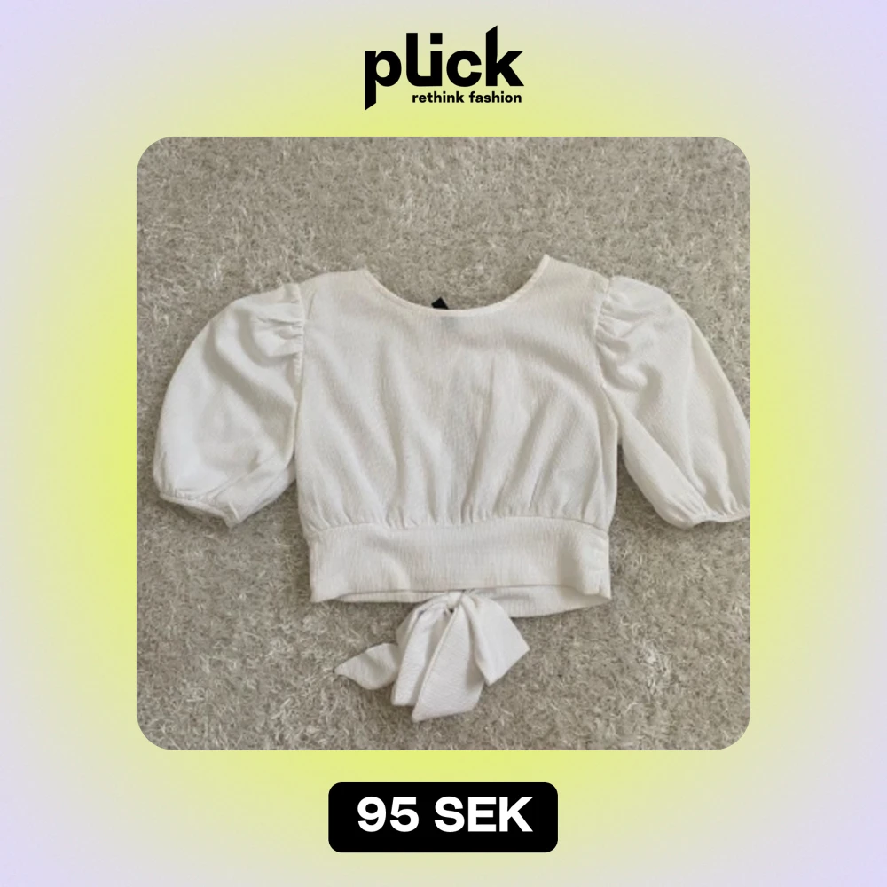 Supersöt vit blus från H&M, öppen i ryggen och en rosett på baksidan. Bra skick Använd fåtal gånger