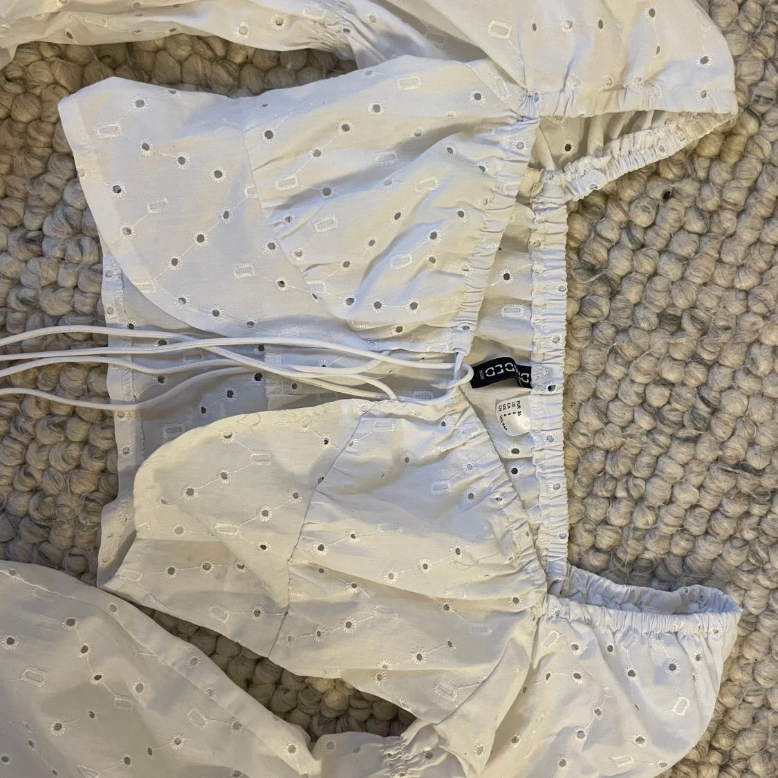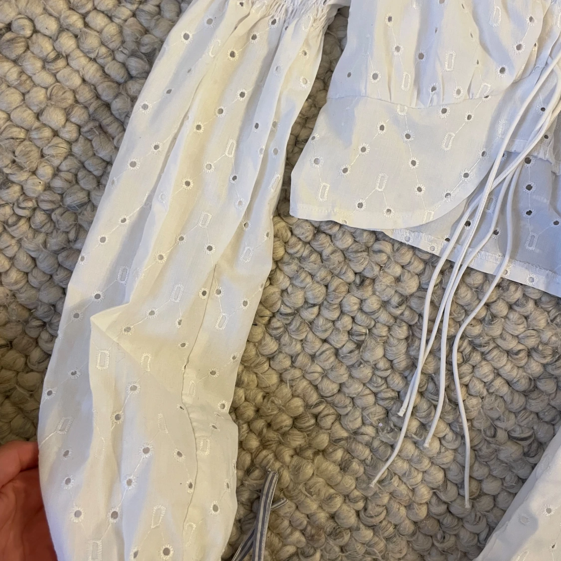 snygg vit blus som passar perfekt till fest och finare tillfällen. går att ha både off shoulder och som vanligt. använd 2 gånger så nyskick. storlek 36, passar mig som är xs/s