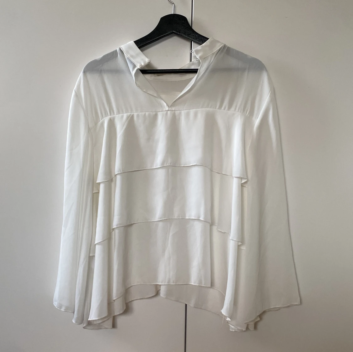 En jättefin vit blus från gina tricot! Den är storlek 44 men är väldigt liten i storlek och passar perfekt på mig som har 38.