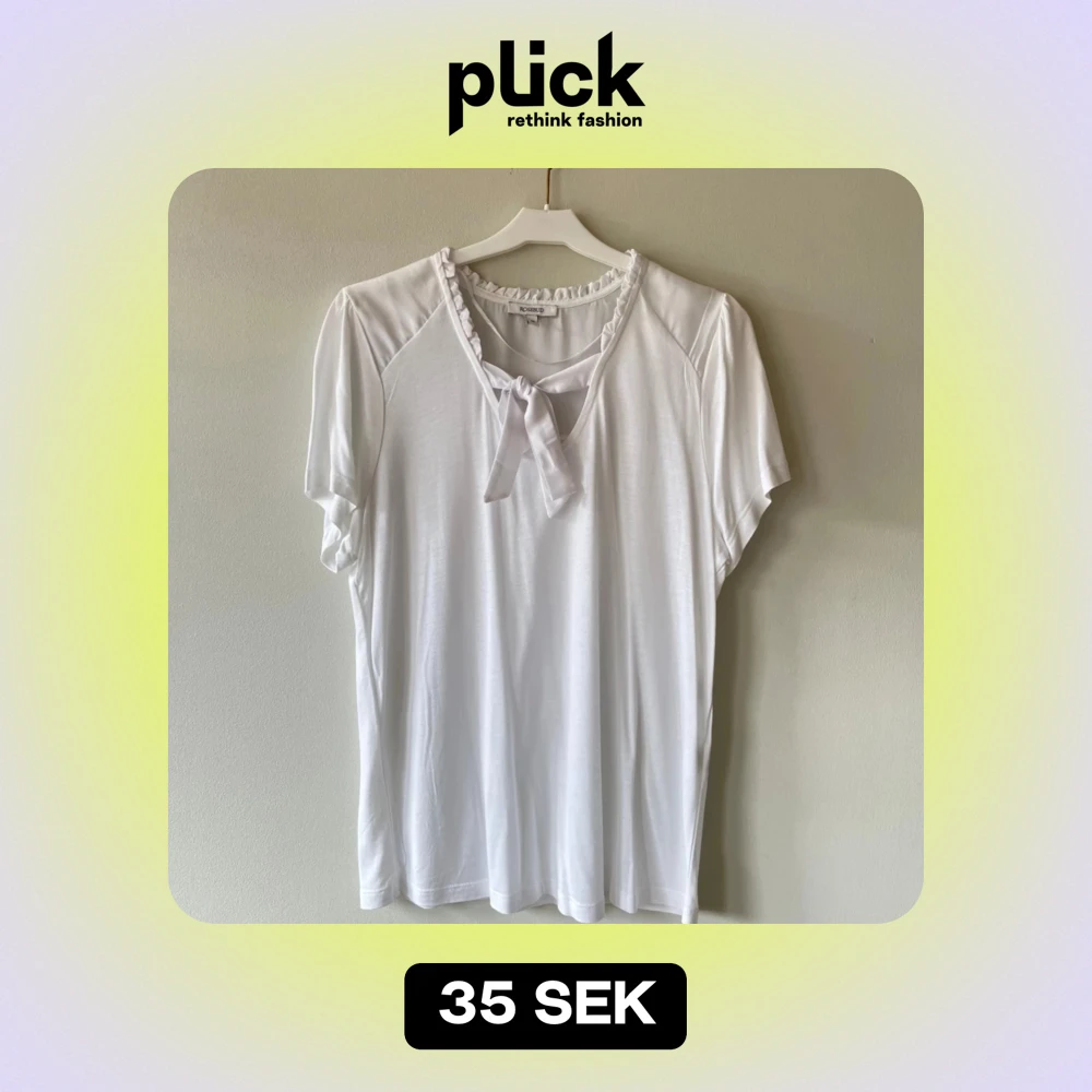 Vit blus med rosett från Rosebud, storlek M. Väldigt mjukt tyg och nästan aldrig använd!