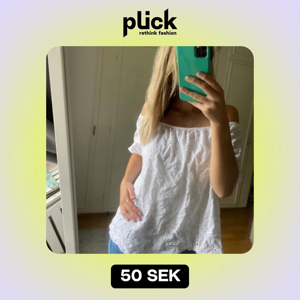 en vit vacker blus från Ellos som man kan ha som off shoulder eller vanligt. Liten i storleken då jag är en XS. Aldrig använd 🩵
