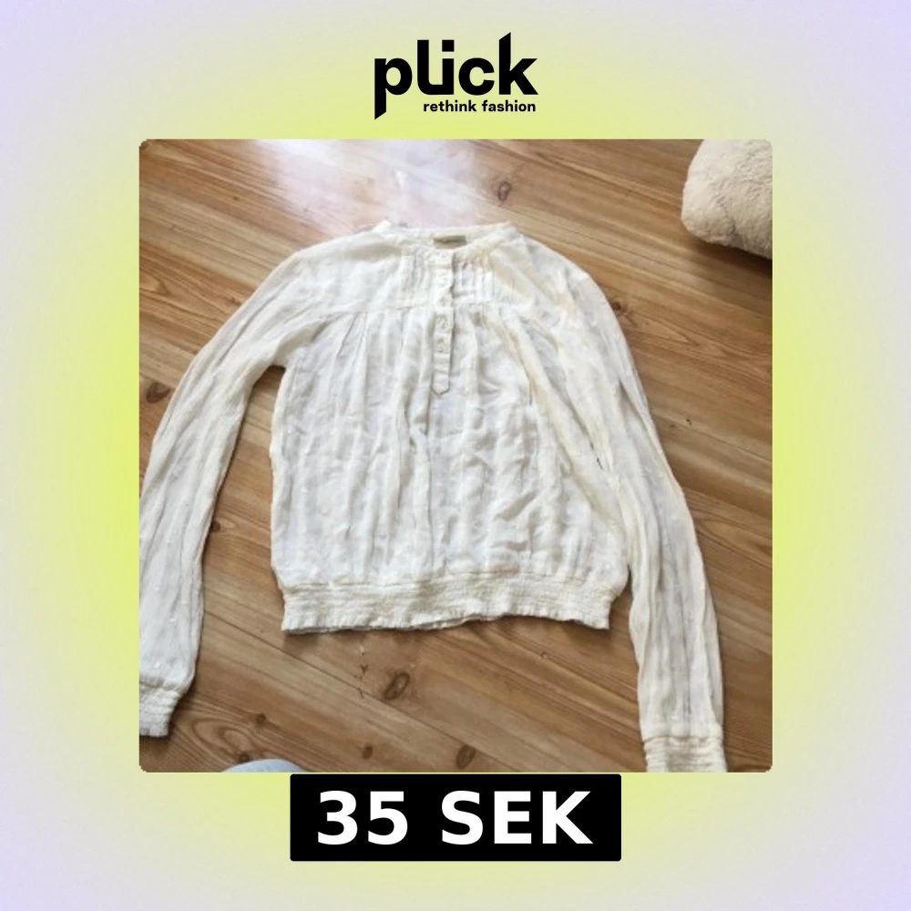 En vit blus som är knappt använt det är skön och fin att ha på sig under hösten eller våren