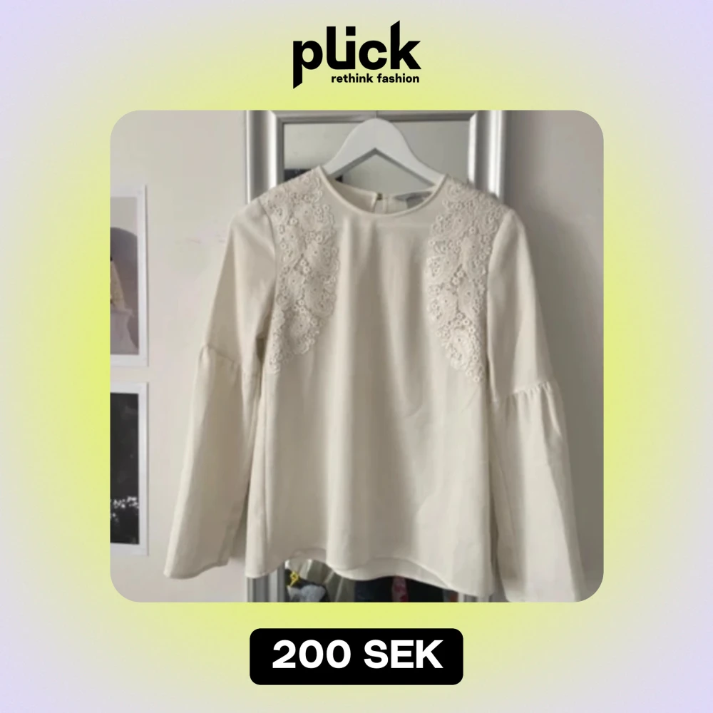 Vit långärmad blus med fina spetsdetaljer o trumpetärmar 🤍 fint skick