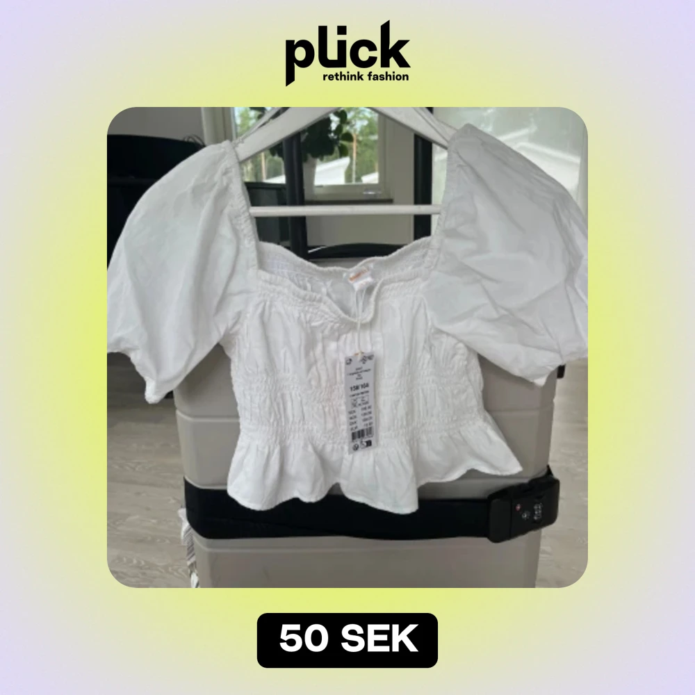 Oanvänd vit blus i kort modell i storlek: 158-164 från Gina Tricot.