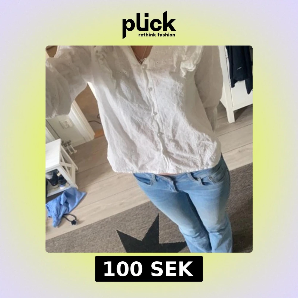 Jättesöt vit blus köpt från only som inte kommer till användning längre. Den är inte använd många ggr utan ungefär bara 5ggr. Dock har den en defekt där den tappat en pärla vid armen som jag har bild på men det märks knappt. Storlek S.