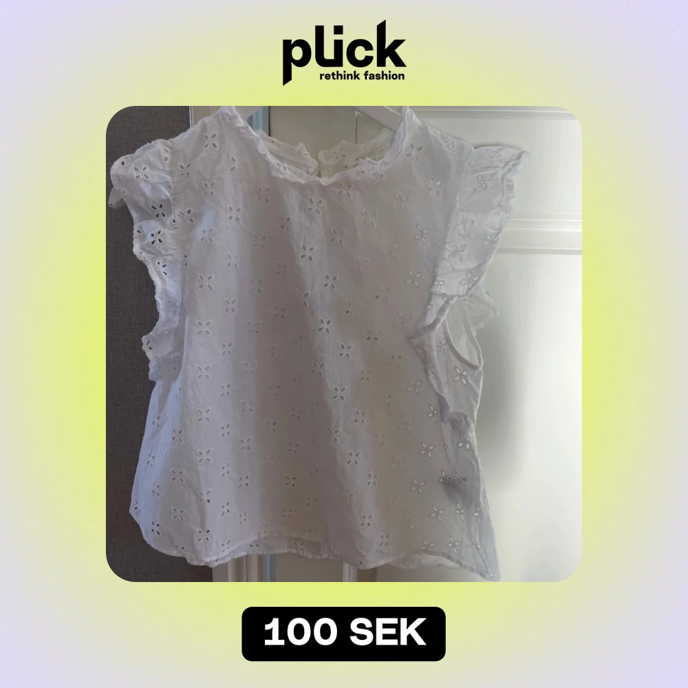 Säljer en söt vit blus från H&M i storlek M. Den har ett fint broderat blommönster och volangdetaljer vid ärmarna🌸