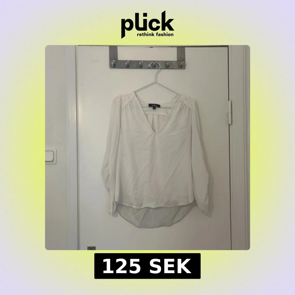 Säljer en stilren vit blus från lulus med v-ringning och långa ärmar. Perfekt för både vardag och festliga tillfällen. Blusen har en luftig passform och är tillverkad i ett lätt material.