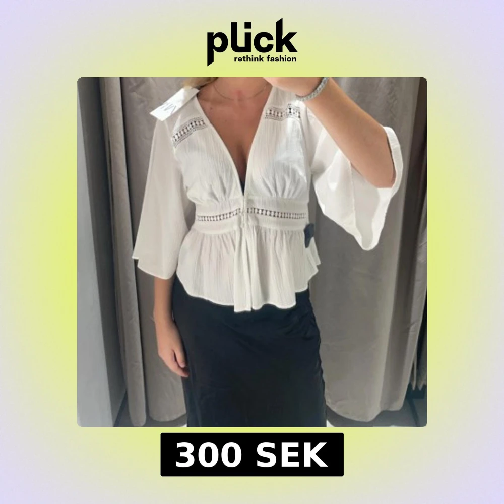 Säljer pga att den inte kommer till användning. Snygg vit blus med trekvartsärmar. Blusen har en v-ringad design och en lätt volangdetalj vid midjan.🌸 Perfekt för en stilren och chic look. Nypris 379kr från Zara. Använd några få gånger, inga defekter. 😊