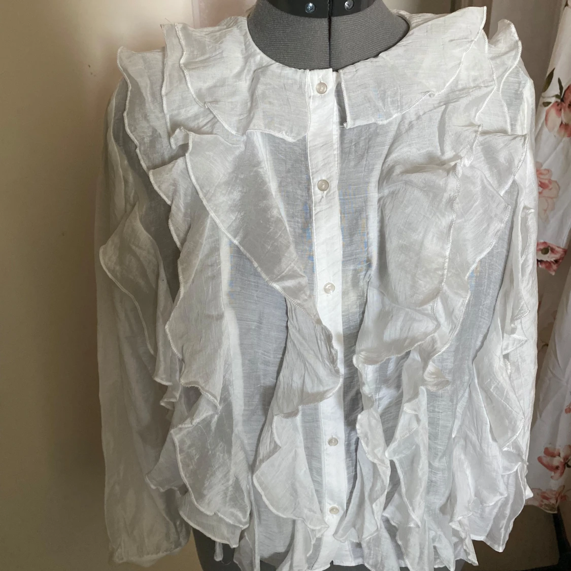 Säljer en superfina vita blusen från zara. Den passar mig perfekt som har storlek M dock är blusen i storlek XL men zara är lite känt för att vara lite off med storlekarna😂❤️