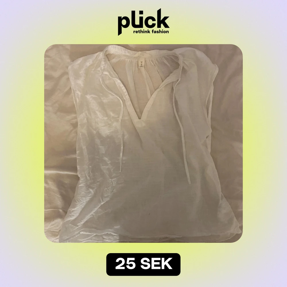 Säljer en superfin vit blus i linne. Den har en avslappnad passform med v-ringning och knytband vid halsen. Perfekt för sommardagar eller en avslappnad vårlook. Blusen är i nyskick och redo för nya äventyr!