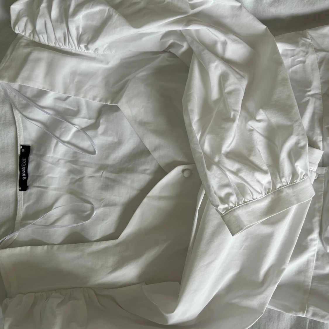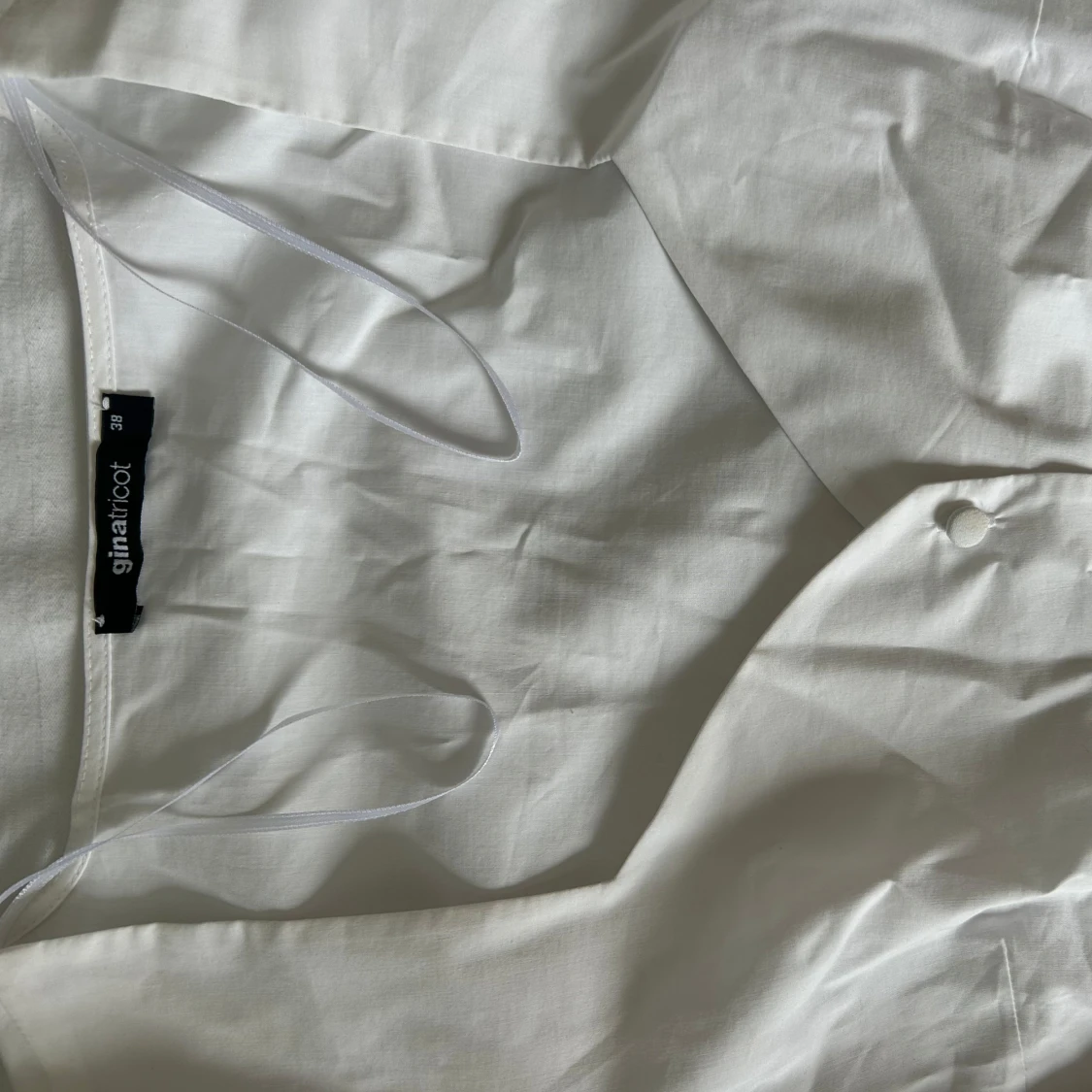 Supersnygg vit blus från Gina Tricot. Blusen har knappar framtill och är gjord i ett lätt bomullstyg. Perfekt för dig som gillar romantiska detaljer och stilren look.